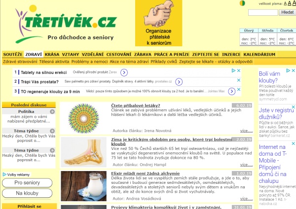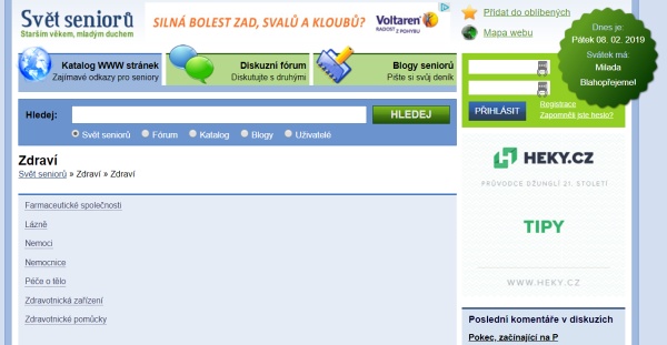 seniorum.cz - sekce ZDRAVÍ • web i60.cz - sekce Zdraví a krása • Web Svět seniorů - oddíl Katalog www.stránek - sekce ZDRAVÍ • Třetívěk.cz - sekce ZDRAVÍ • Padesátpětplus.cz - sekce ZDRAVÍ